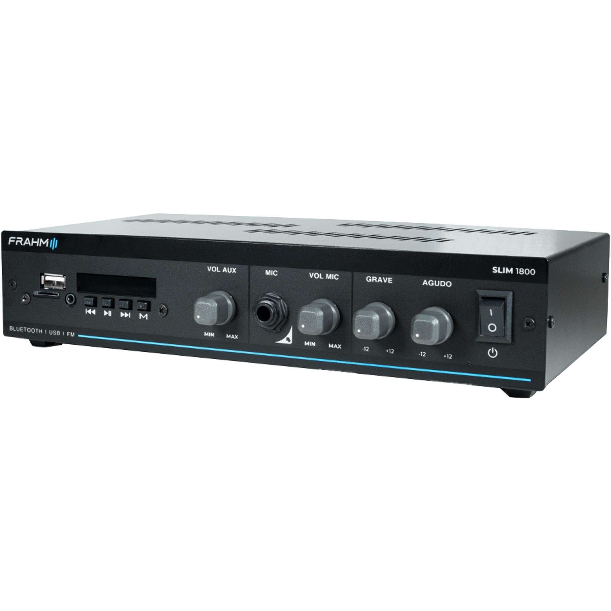 O Amplificador Frahm Slim 1800 G5 é a linha nº1 em amplificadores comerciais do Brasil, agora em sua quinta geração (G5), trazendo ainda mais tecnologia e um visual único. Este é um modelo que oferece potência de 60 Watts RMS, sendo uma escolha versátil para uma variedade de ambientes comerciais, como recepções, clínicas, conveniências, farmácias e lojas.