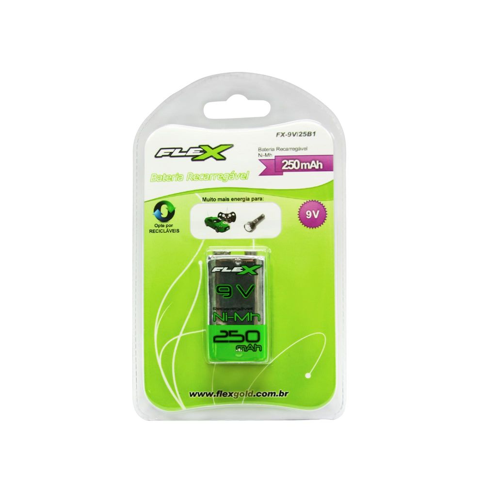 A Bateria Recarregável 9V 250mAh da Flex é a solução prática e econômica para dispositivos como lanternas, alarmes, brinquedos e muito mais. Com sua recarga fácil, você garante energia constante sem precisar trocar de bateria, aproveitando excelente durabilidade e desempenho.