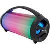 Composta por Rádio FM, conexão Bluetooth, luz de led, entrada auxiliar e bateria interna. Além de ter a potência do alto-falante de 10W, sendo ideal para quem procura por uma caixa de som para sonorização de ambientes.