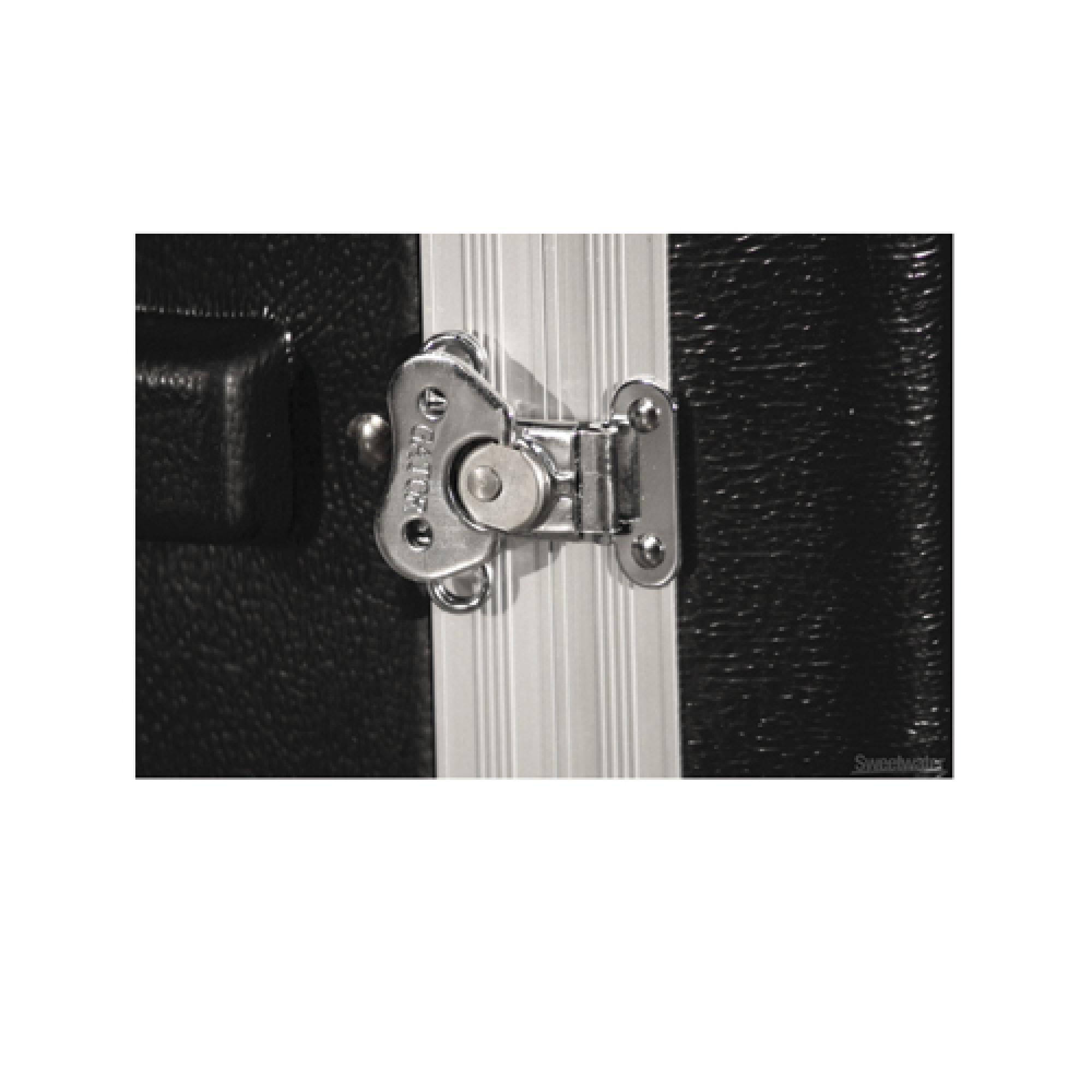 Case com construção leve em polietileno e trilhos substituíveis em aço zincado de 7mm na frente e na traseira. Travas de torção ultra resistentes e alças embutidas confortáveis. Tampas com travas e duas alças laterais. Resistência a água.