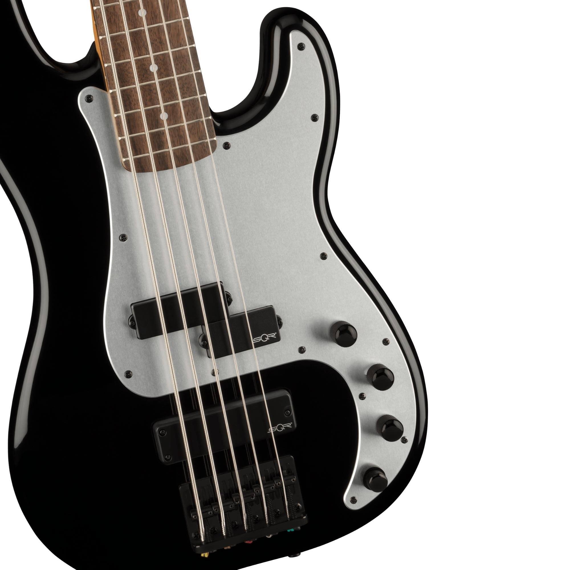 - Pré-amplificador e graves ativo Squier® de 9 volts (Versátil e fácil de usar, o pré-amplificador de graves ativo de 9 volts foi projetado internamente na Fender e inclui controles intuitivos para volume principal, mistura de captadores, timbre e reforço de graves/agudos) |