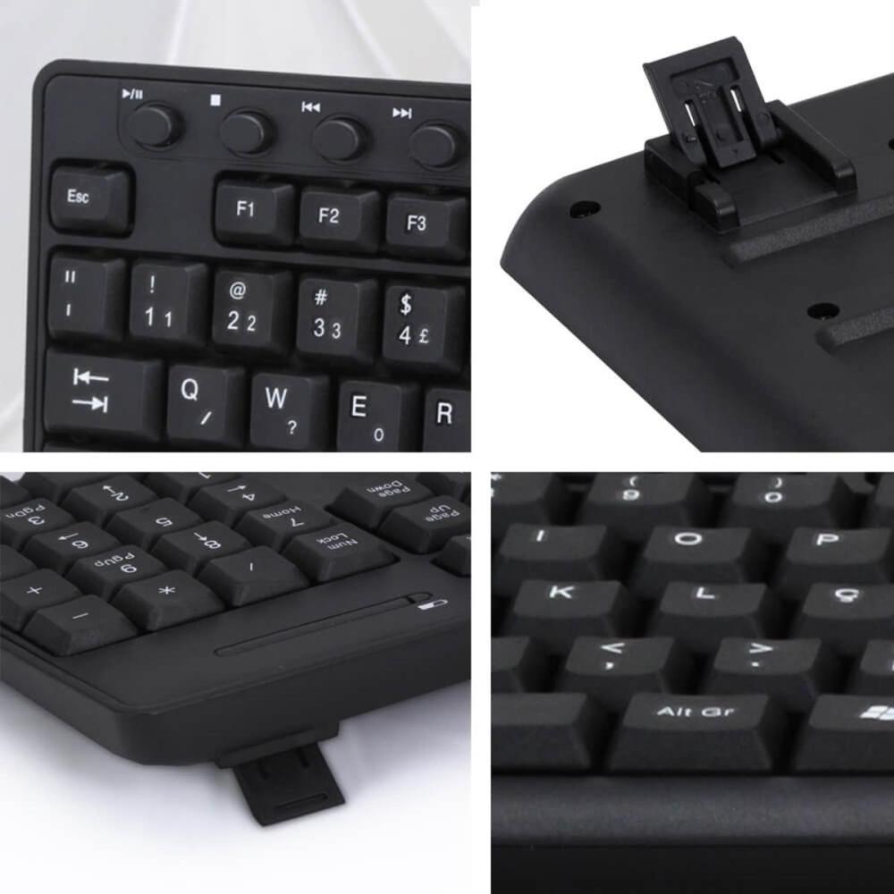 • Teclado multimídia: Teclas de atalho para controlar suas músicas, abrir caixa de e-mail e muitas outras funções.