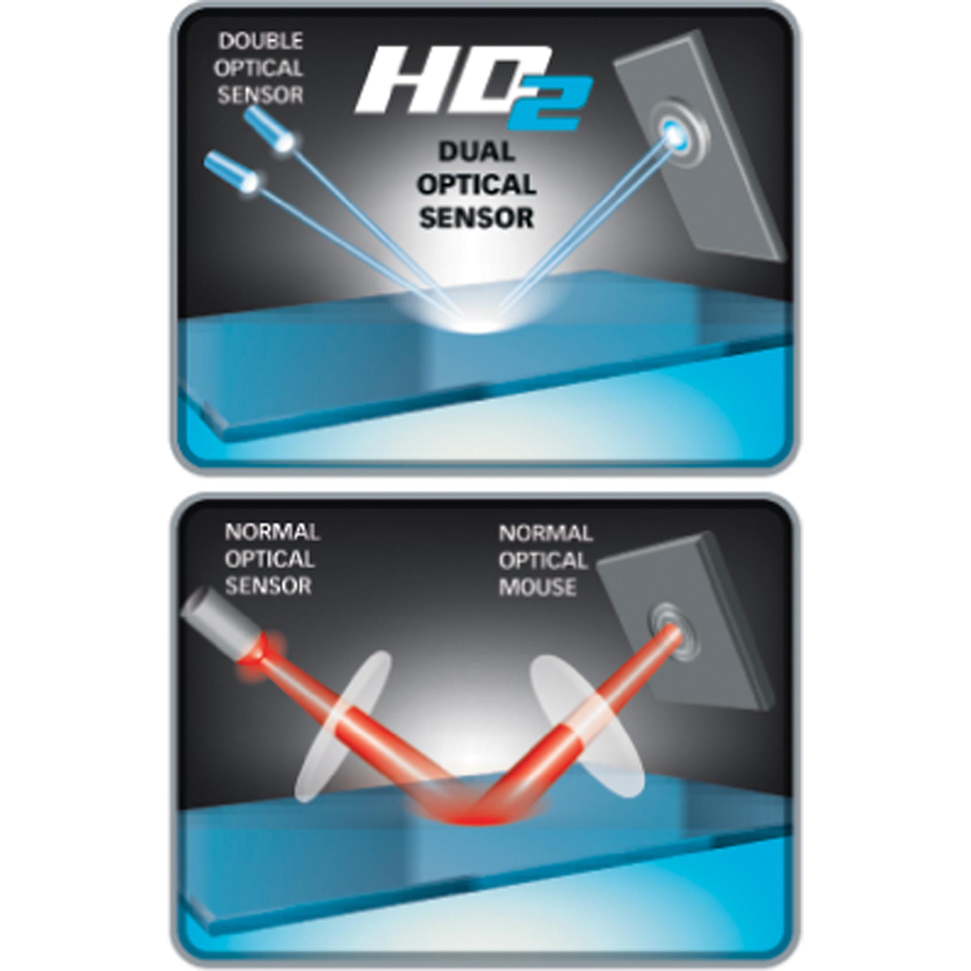 A tecnologia HD2 equipa o mouse modelo Zeus com dois sensores ópticos, que atuam em conjunto para maior precisão e melhor performance do mouse. Sua resolução varia de 1200dpi até 500dpi e pode ser ajustada de acordo com a preferência do usuário.