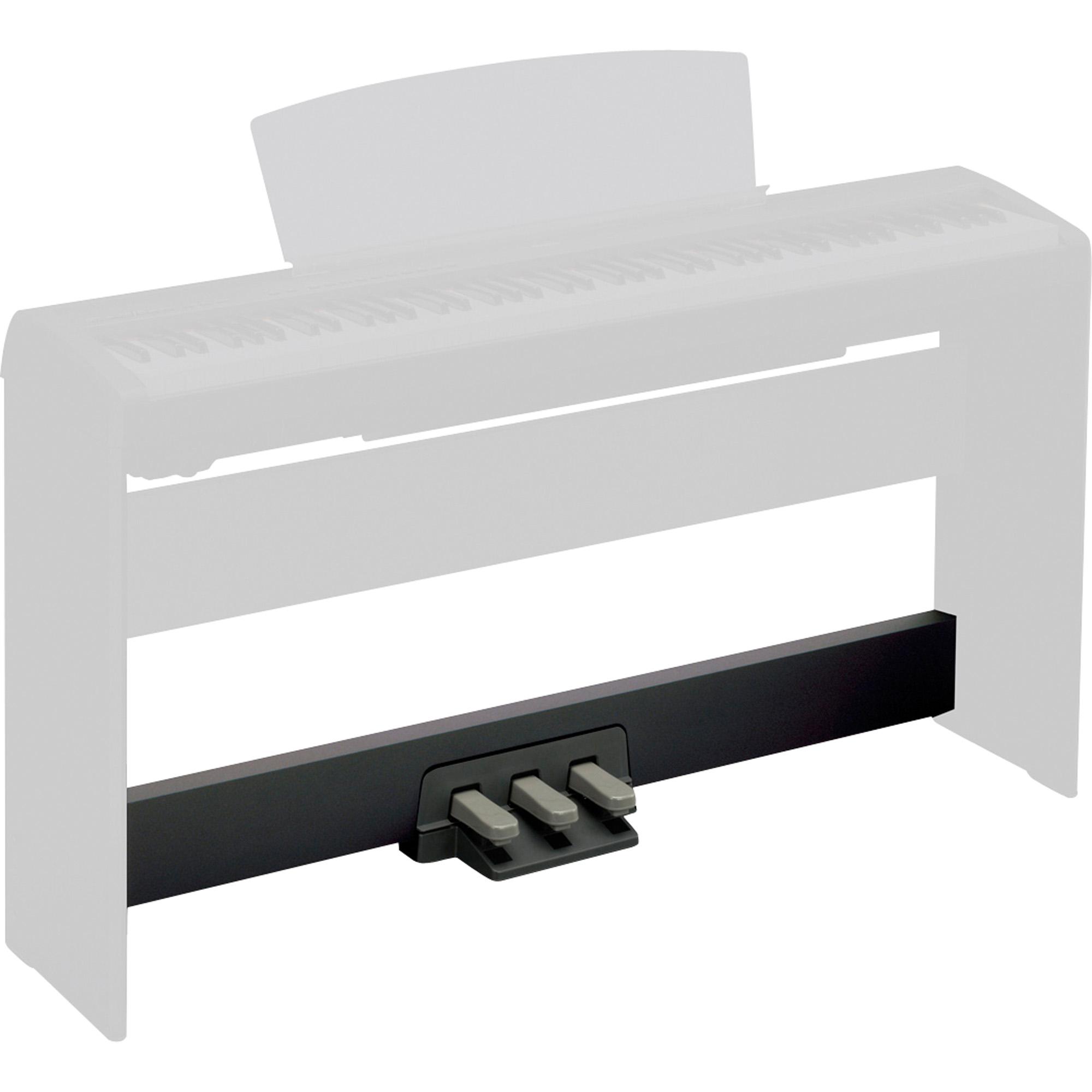 Unidade opcional de três pedais para a série P-95, P-105 e P-115 de pianos digitais. Requer necessariamente acoplamento no suporte L 85. A placa de pedais se encaixa no suporte e provém os três pedais tradicionais (una corda, sostenuto e sustentação) para adicionar expressão em sua performance.