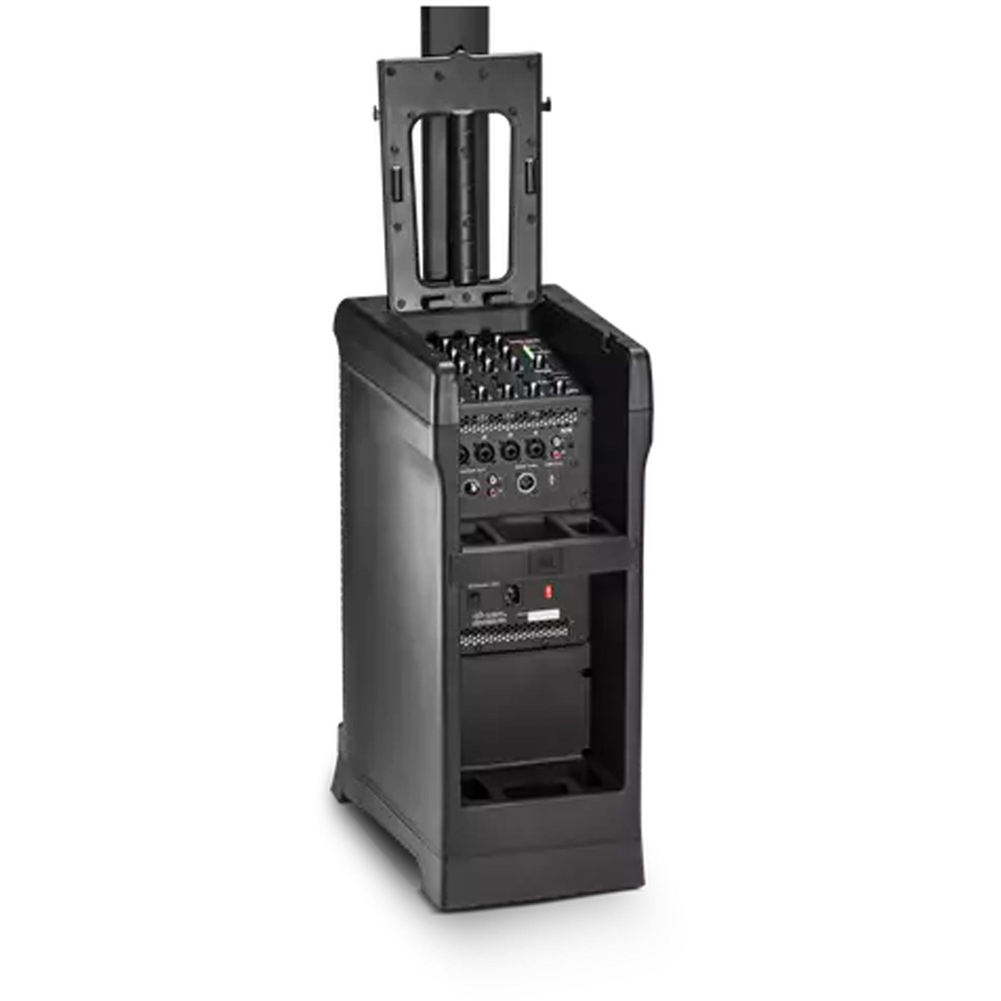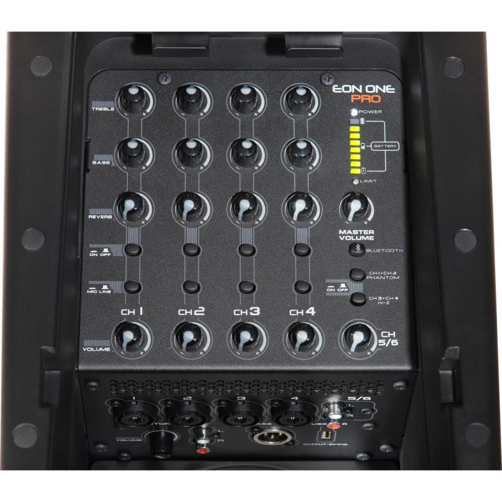 - Mixer de sete canais com reprodução de áudio Bluetooth, (4) 1/4#/XLR, (1) 3,5 mm, (1) RCA estéreo, phantom power de +48 V, Hi-Z e um conector pass-thru XLR: Sim.