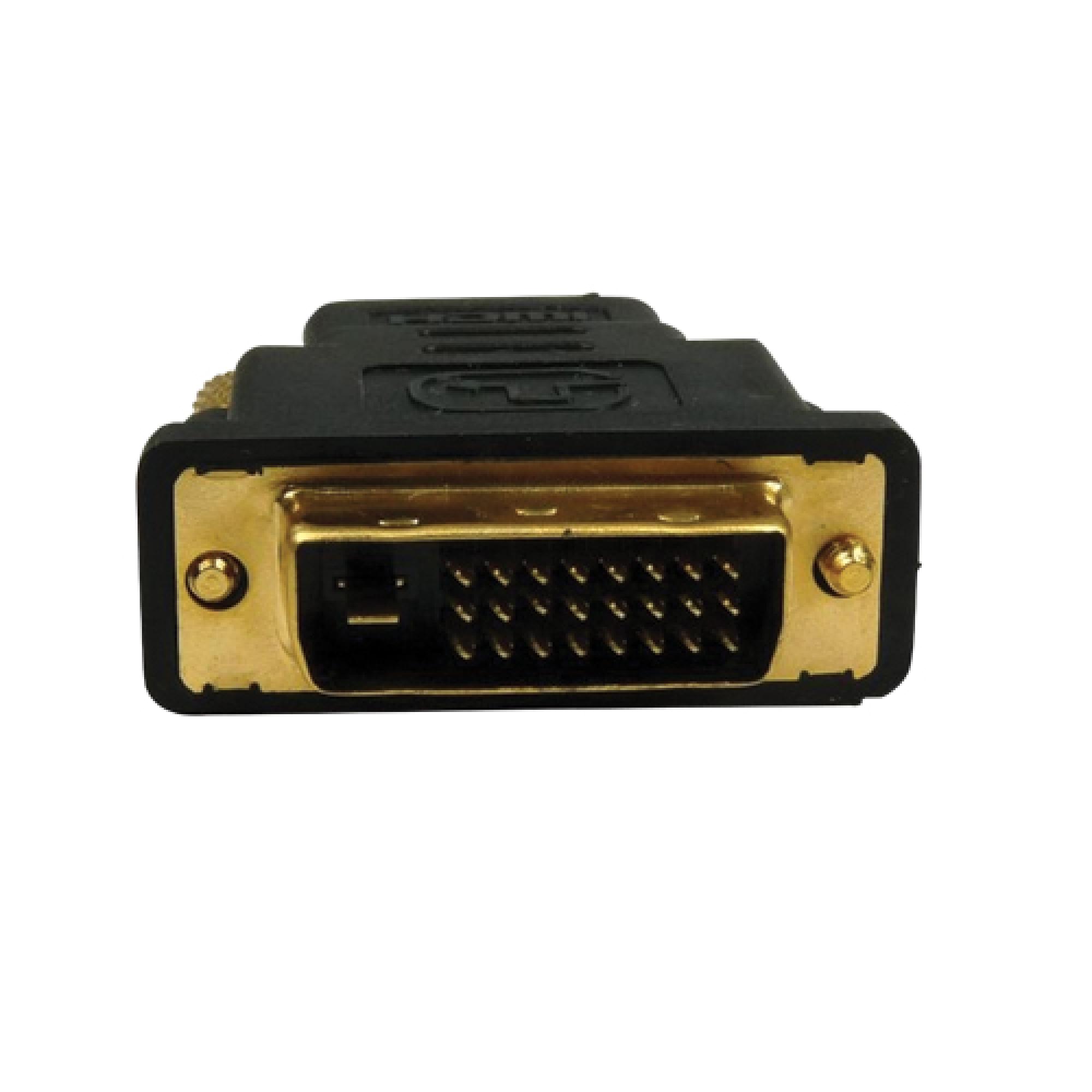 O Adaptador DVI Macho x HDMI Fêmea possui composição de PVC, liga de cobre e zinco. Utilizado para adaptar uma entrada DVI Macho para uma saída HDMI Fêmea.