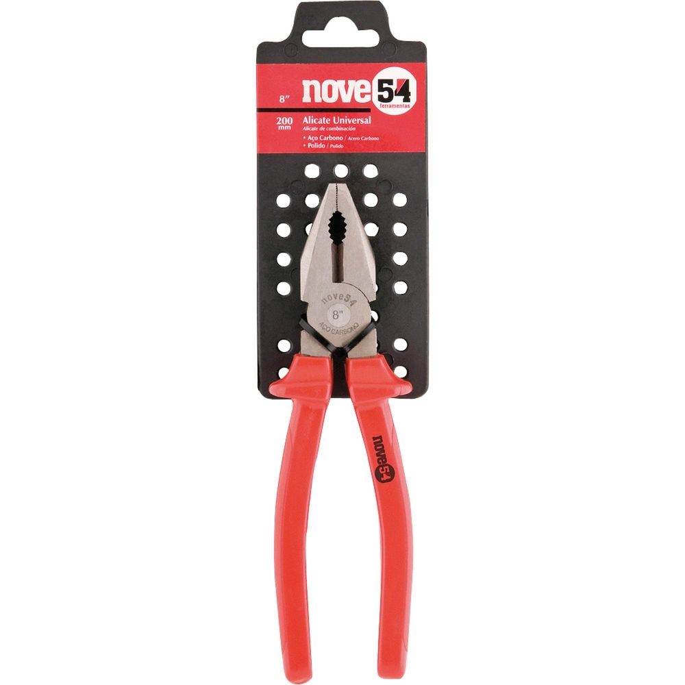 Pensamento em segurança e facilidade chega ao mercado o Alicate Universal 8" AC Laranja NOVE54 com seu cabo anatômico, abas de proteção, cabo plastificado para isolamento e um corpo de aço-carbono transpassando toda confiança e durabilidade em seu trabalho!