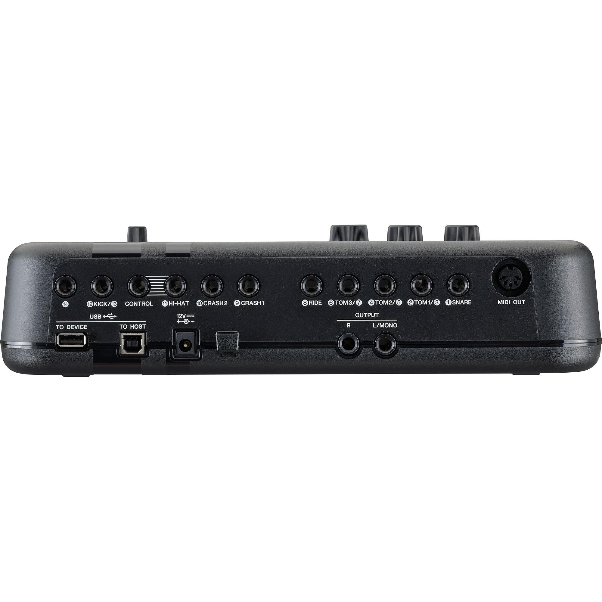 • Entrada do Trigger: Entradas de trigger 1, 14 (Fone Estéreo Comum, L: Trigger, R: Rim switch/Trigger), 2/3, 4/5, 6/7, 12/13: (Fone Estéreo Comum, L: Trigger R: Trigger), 8, 9, 10, 11: (Fone Estéreo Comum, L: Trigger R: Rim switch)