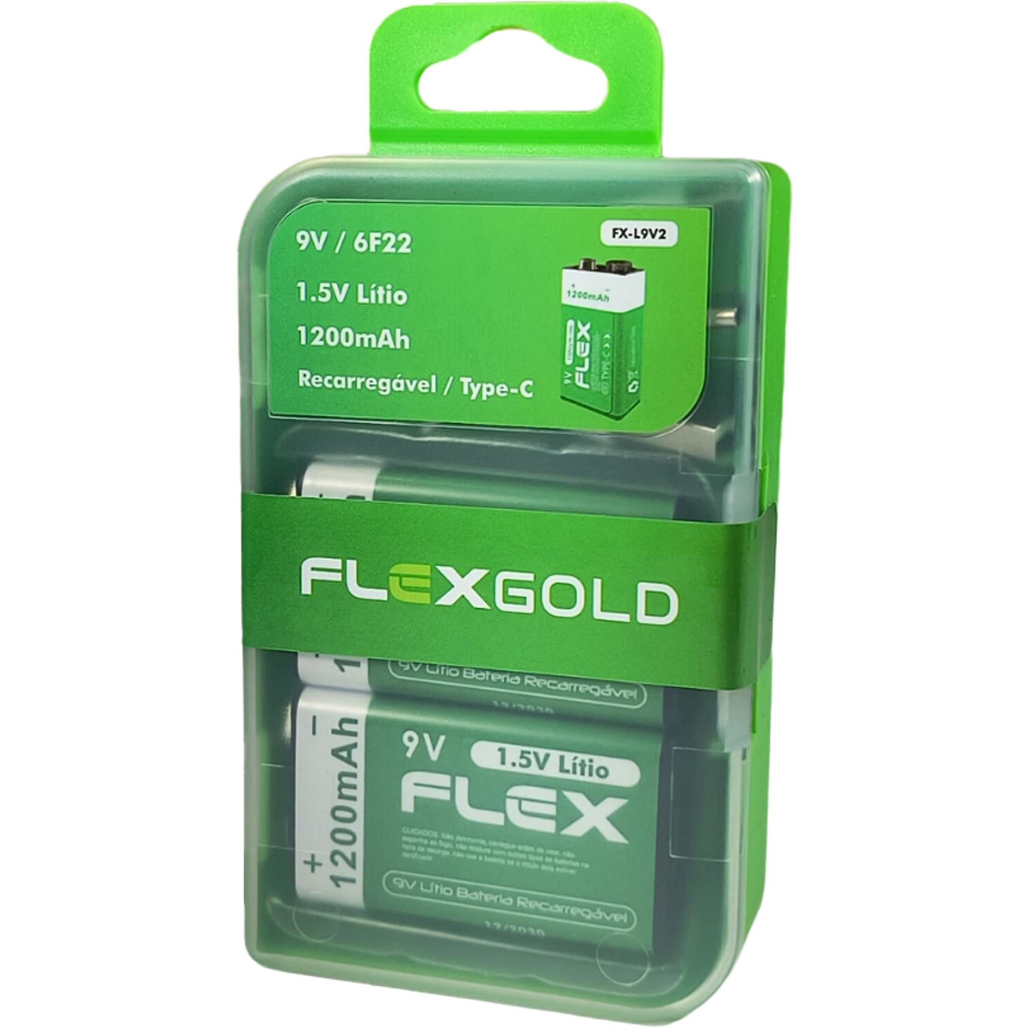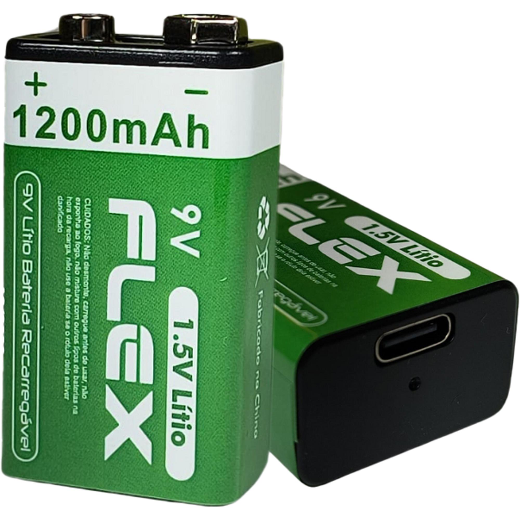 Bateria Recarregável 9V 1.5V 1200mAh (C/2 Baterias) Flex