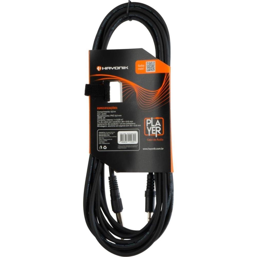 Cabo de Áudio Hayonik Player P2 x P10 5m Preto