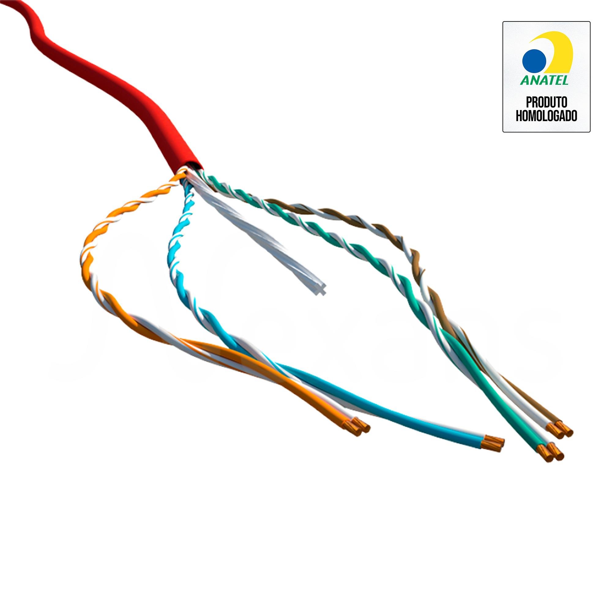 • 4 pares trançados atendendo ao padrão de cores Azul/Azul Claro, Laranja/ Branco, Verde/Verde Claro, Marrom/Marrom Claro, quanto à isolação dos pares;