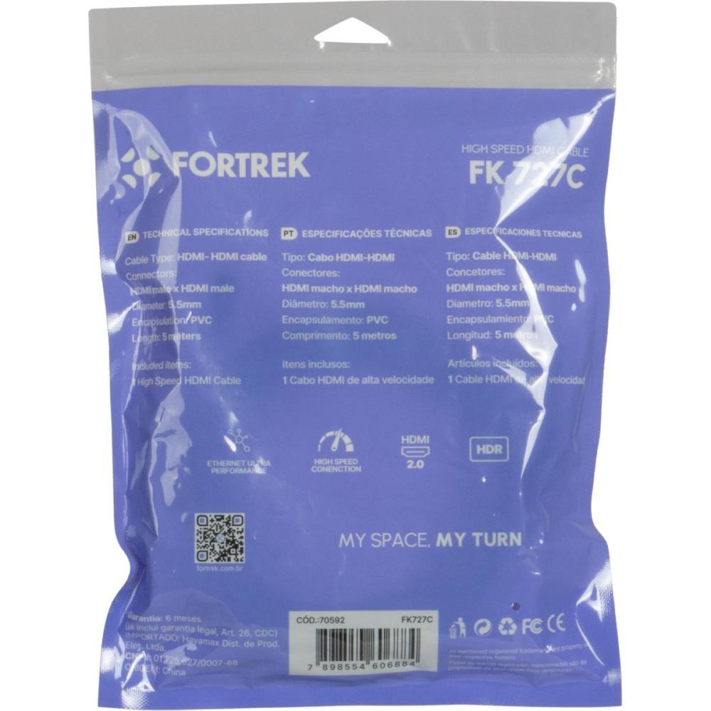 Cabo HDMI 2.0 4K 5M HD205 Fortrek FK 727C