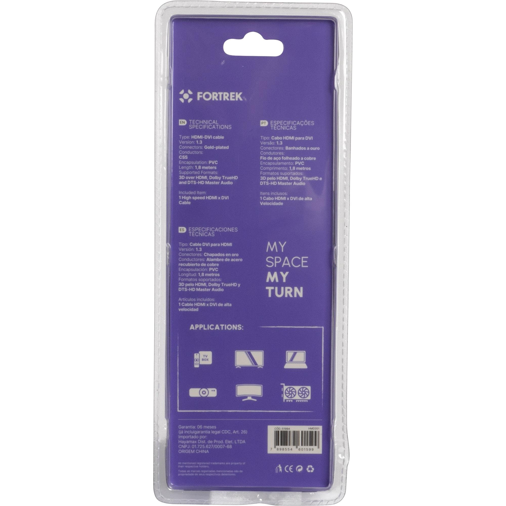 Cabo HDMI X DVI-D Single Link HMD-201 1,8m Fortrek