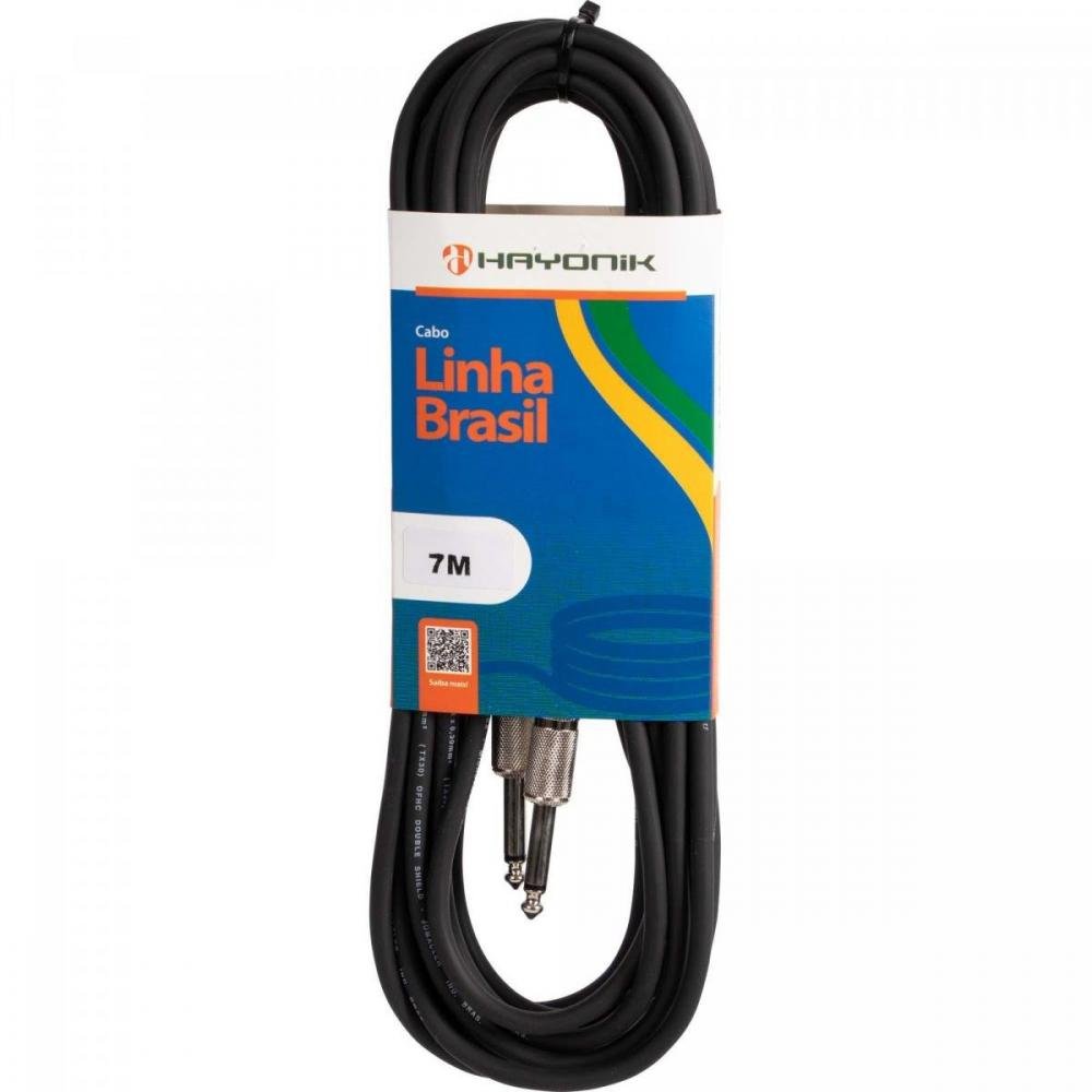 Cabo para Instrumento HAYONIK Linha Brasil P10 x P10 7m Preto