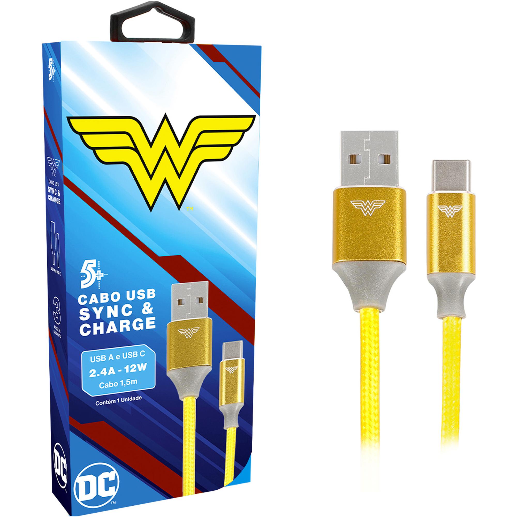 Cabo USB-A Para USB-C Wonder Woman 1,5m 5+