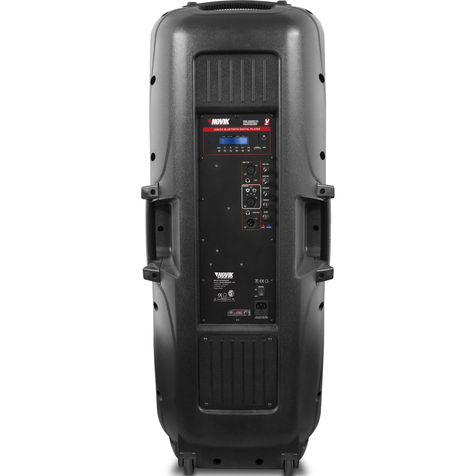A caixa acústica EVOD BRAVERY 215 é ideal para sonorização de ambientes, como igrejas, bares, clubes e mais. É um produto versátil, possui alças laterais e rodas para facilitar seu transporte e conta ainda com entradas MP3 Player, SD Card, USB e Bluetooth.