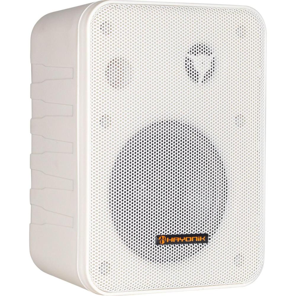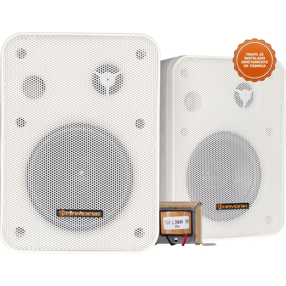 A linha de Caixas Ambience Line da HAYONIK pertencem a um sistema de caixas acústicas para instalação na maioria dos ambientes. Conta com um sistema em 2 Vias, onde dispõe de woofer de 4" para uma grande faixa de frequências, um tweeter de 0,5" onde a resposta em frequências altas é bem mais eficaz. Dispõe também de um sistema com alto-falantes de cone com suspensão, onde o local quer mais atenção em frequências baixas, além de já vir com o trafo de 70V instalado internamente.
