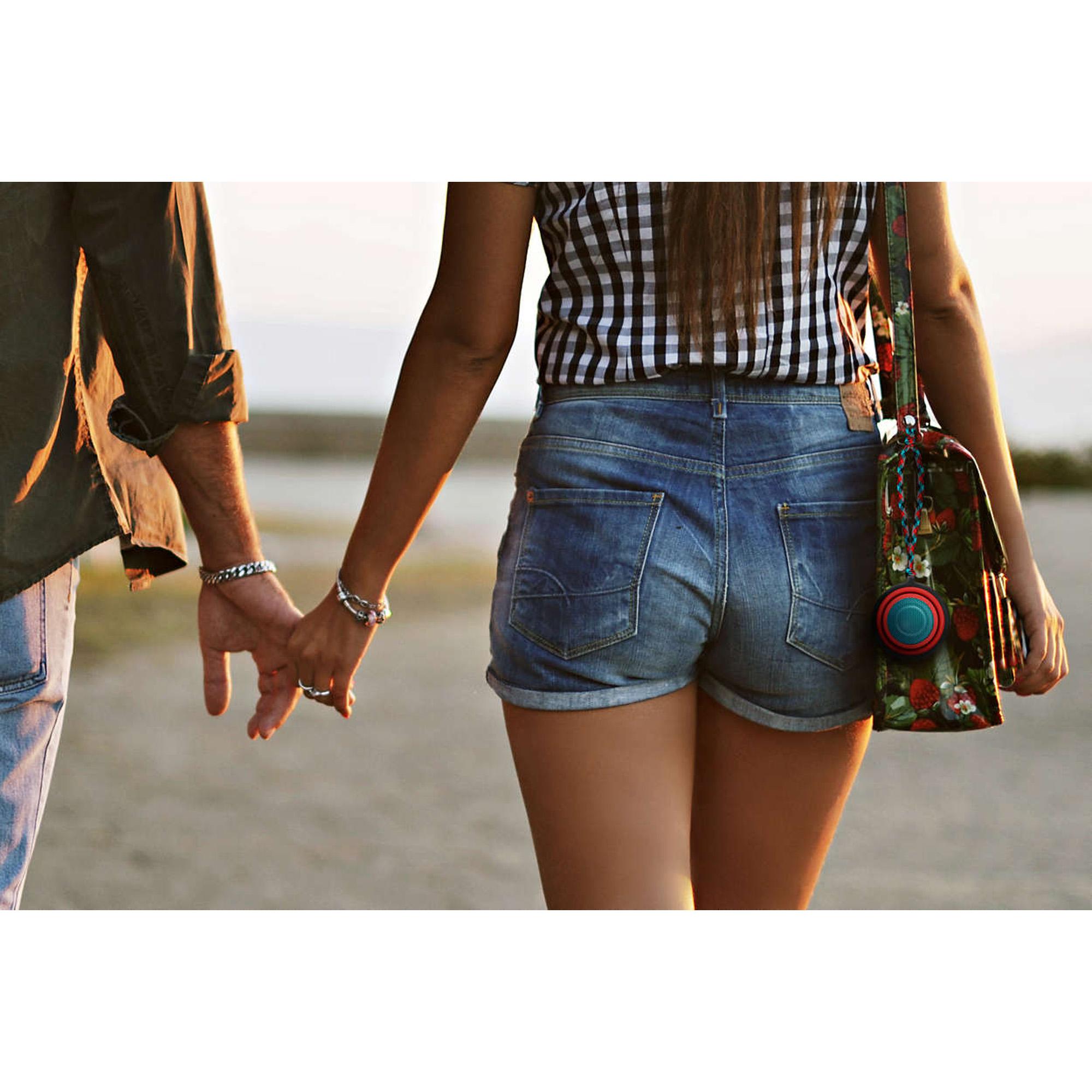 Essa caixa acústica expansível pode ser encolhida para ouvir músicas em viagens ou aberta para aumentar a qualidade do som, basta segurá-la nas partes superior e inferior e puxar.