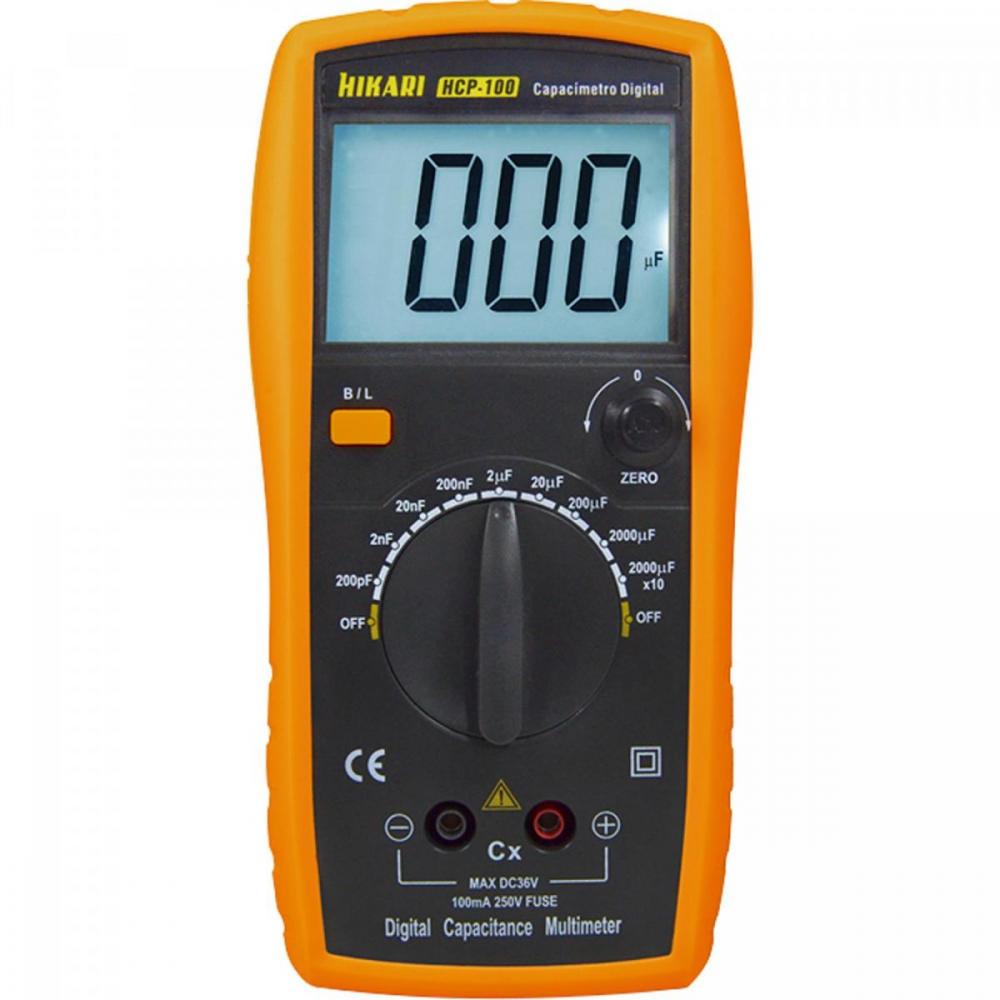 - Precisão: 200pF ± (0.5%+7D); 2nF ~ 200µF ± (0.5%+5D); 2000µF ± (2.0%+5D); 20000µF ± (3.0%+10D);