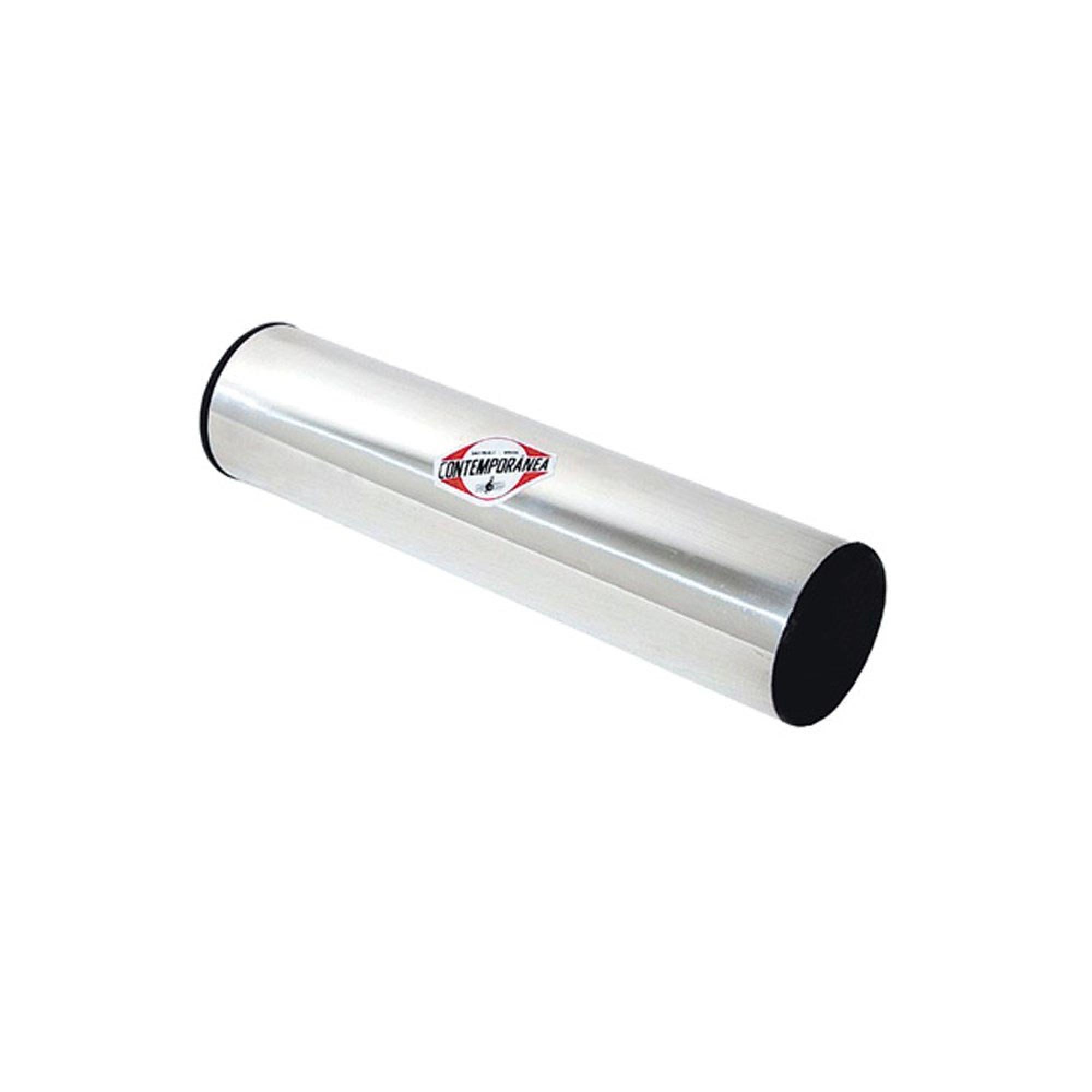 Chocalho de aluminio polido médio, usado para o acompanhamento de vários ritmos músicais.