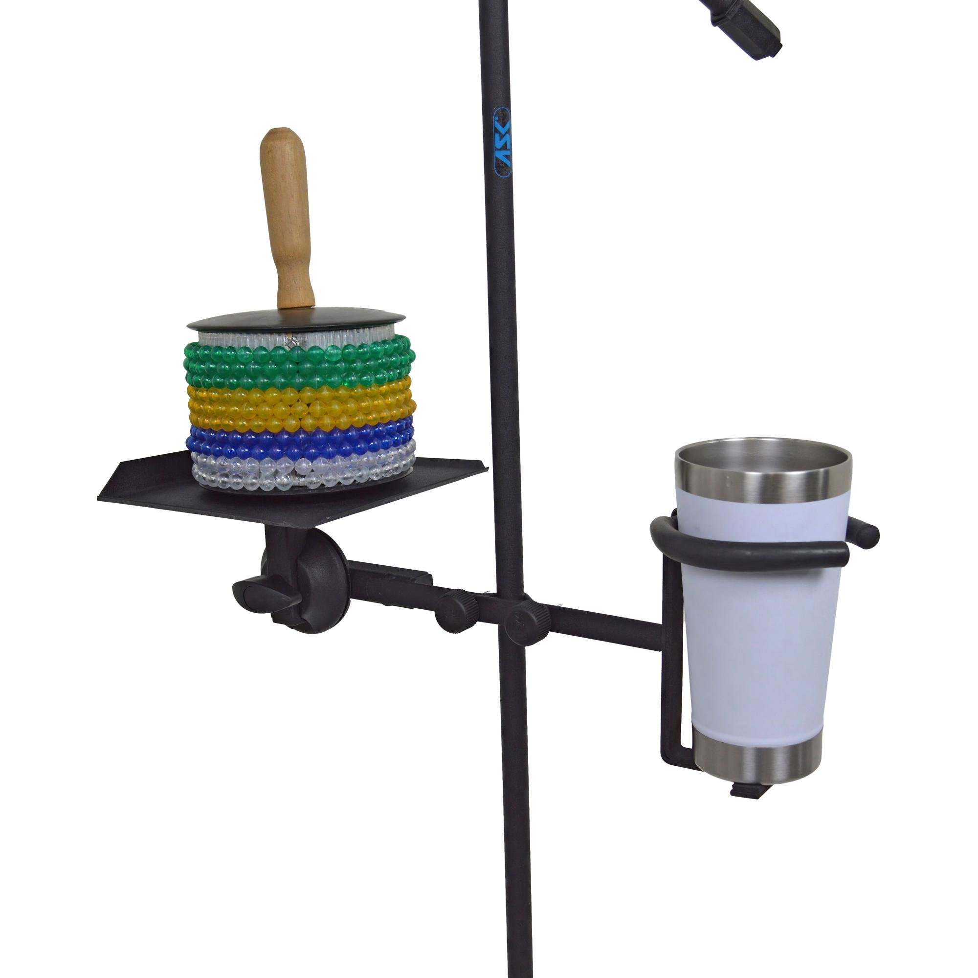 O Clamp Duplo Com Bandeja/Copo C29S é a solução ideal para quem busca praticidade e organização. Oferecendo suporte duplo, sendo uma bandeja multiuso pequena e um apoio para copo térmico ou squeeze, este modelo é perfeito para ser utilizado em suportes ou pedestais.