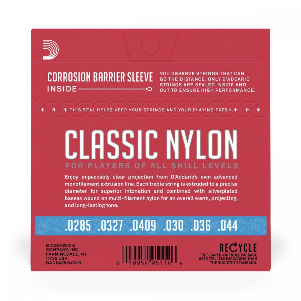 O Encordoamento Para Violão D'Addario EJ27H é uma ótima opção para iniciantes e estudantes. O jogo contém 3 primas de nailon translúcido e 3 bordões com enrolamento de fios de cobre com banho de prata sobre uma base de nailon, proporcionando um timbre encorpado e duradouro.
