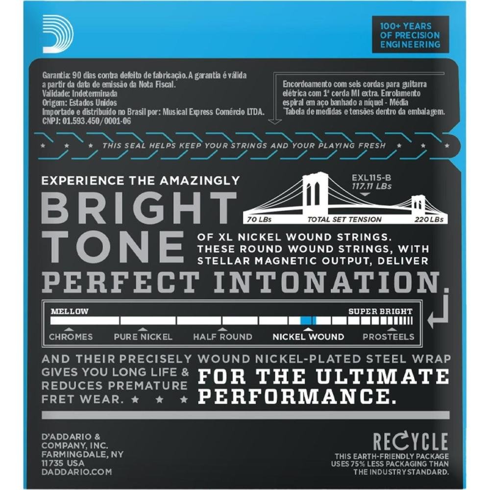Encordoamento Guitarra .011-.049 XL Nickel EXL115-B D'Addario Com Corda