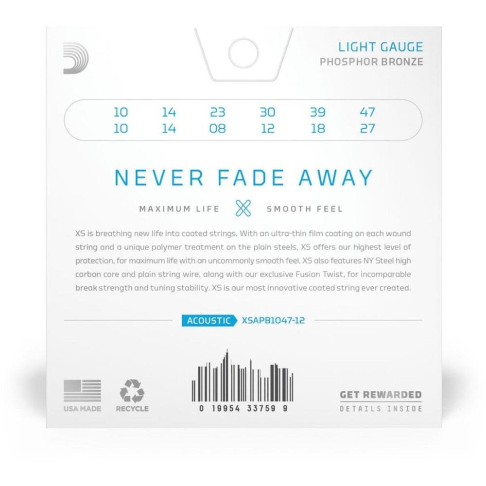 O Encordoamento Para Violão D'Addario XSAPB1047 é uma opção de alta qualidade para os músicos que desejam durabilidade, proteção e um toque suave. Cada corda espiralada possui um revestimento ultrafino, enquanto as cordas lisas recebem um tratamento de polímero exclusivo. Garantindo assim proteção superior e uma sensação agradável ao tocar.