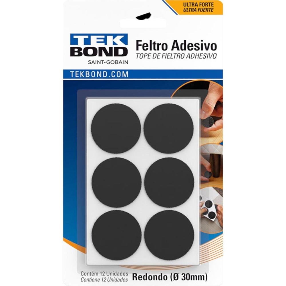 Feltro Adesivo Super Cola Redondo 30mm Tekbond (Com 12)