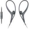 Fone de ouvido intra-auricular esportivo MDR-AS410AP, resistente à água e suor e com microfone integrado para atender chamadas e controlar a reprodução de músicas remotamente. Possui alça ajustável em silicone e 4 tamanhos de almofadas que garantem extremo conforto para prática de esportes por longos períodos.