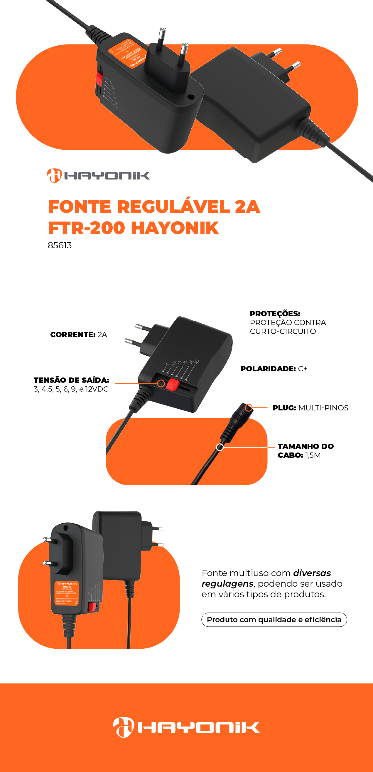 Fonte de Tensão Ajustável HAYONIK FTR200 2A Bivolt