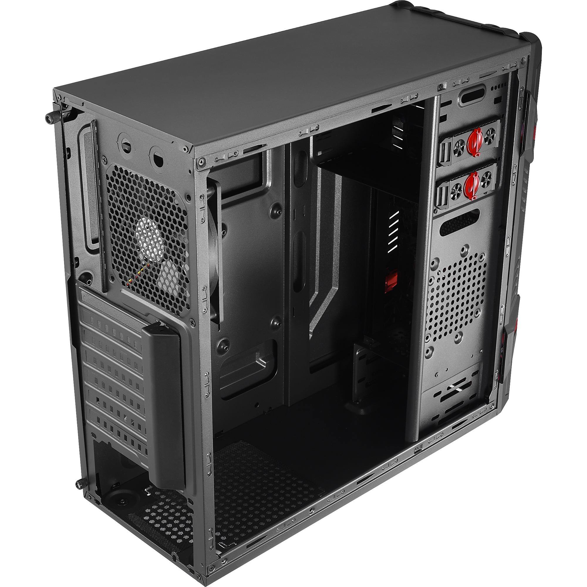 É compatível com VGA de até 400mm, placas mãe ATX e micro ATX e conta com duas entradas USB.