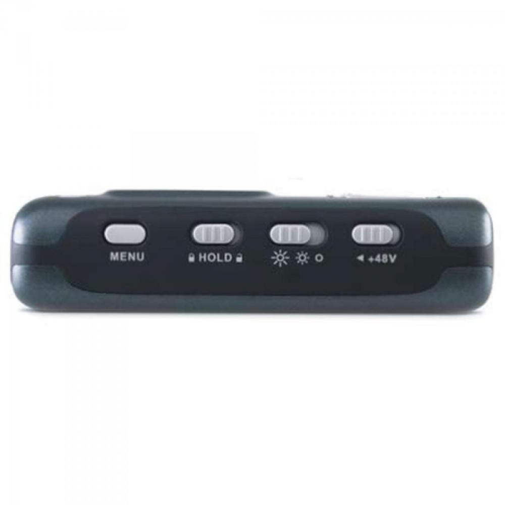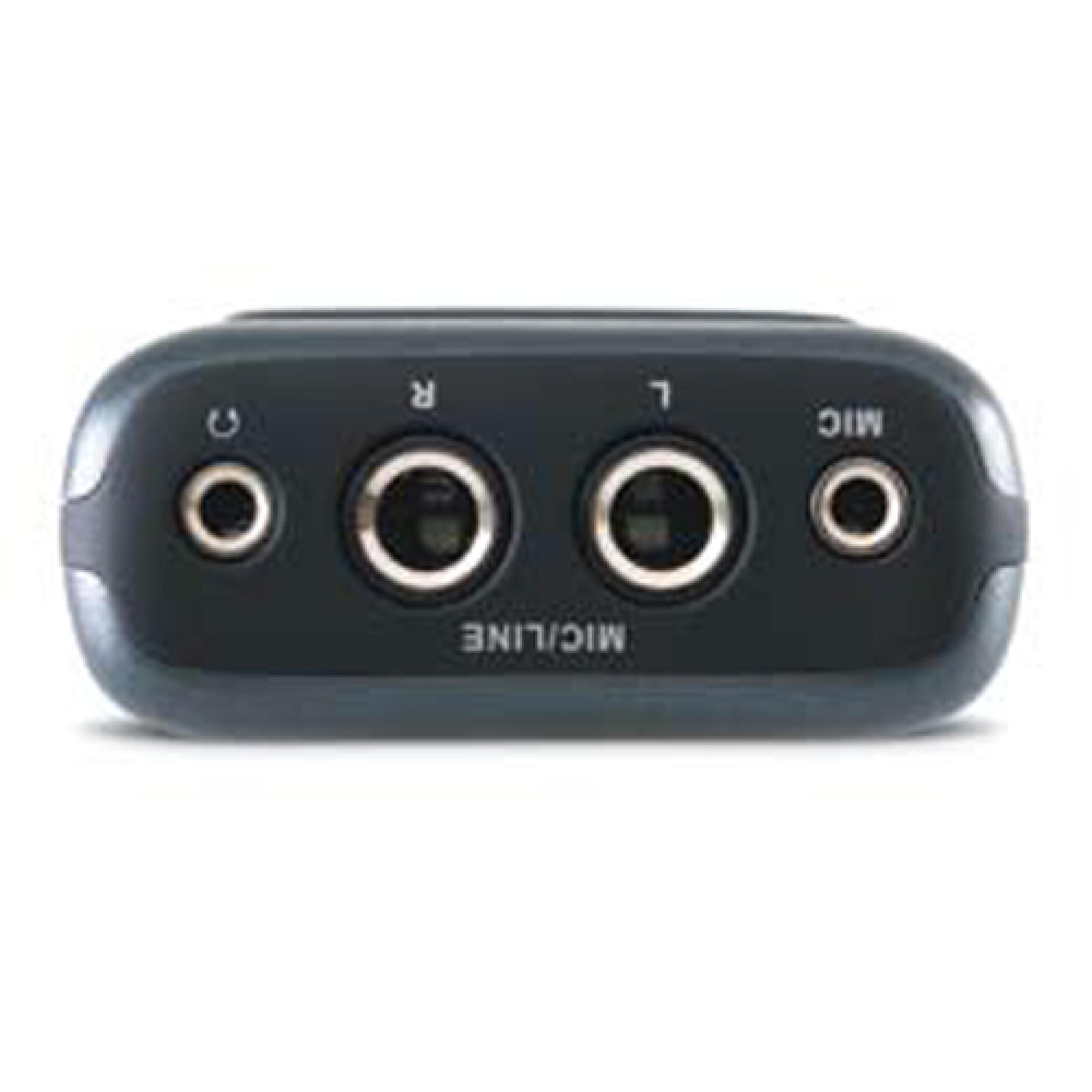 - Entrada TRS 1/8" com alimentação de 5V para uso com microfone electret estéreo (microfone incluído)