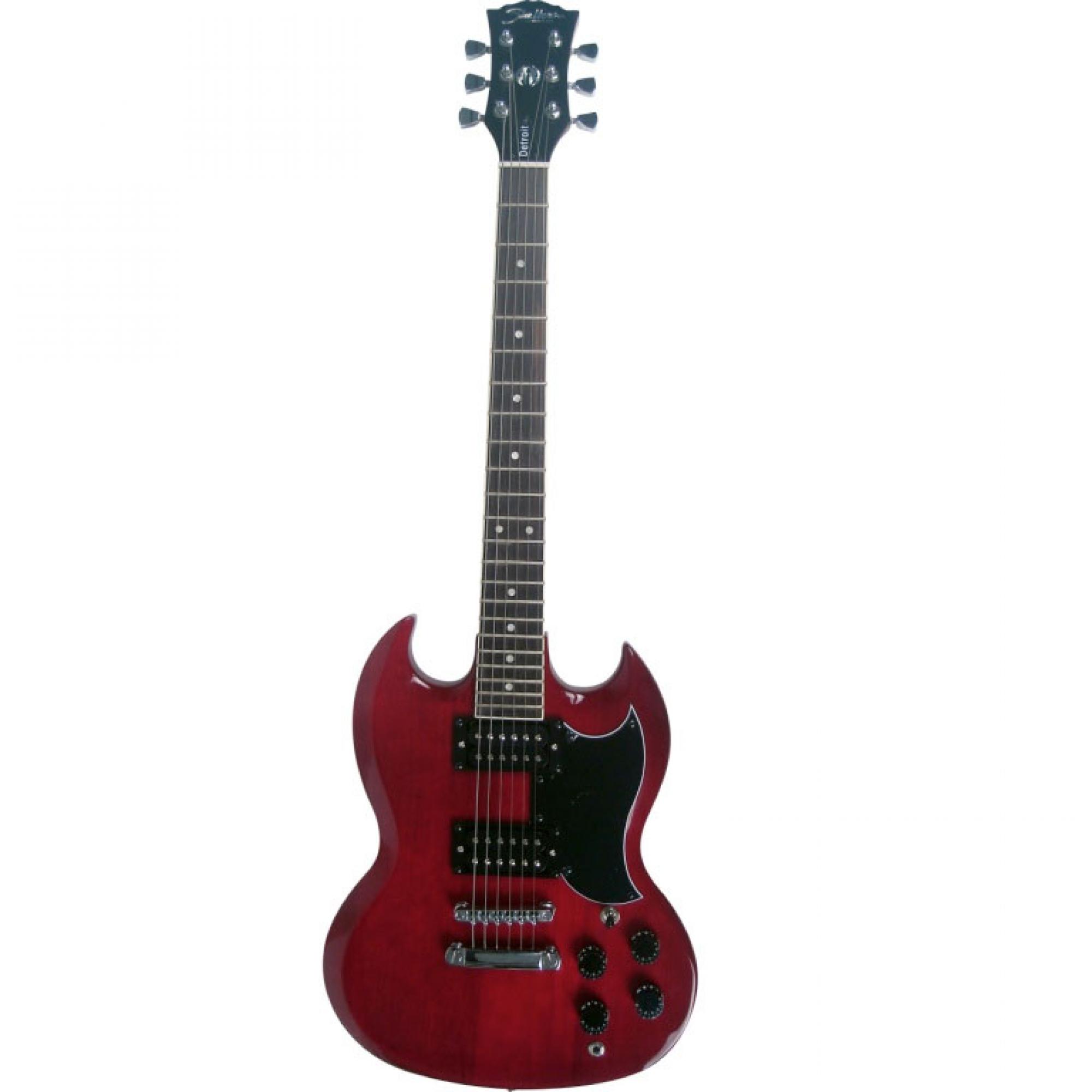 A Guitarra DETROIT Vinho SHELTER é uma guitarra linda, só quem já a testou ou possui uma, tem dimensão de quanto ela é bonita. Possui um desenho praticamente fiel as famosas SGs da Gibson.