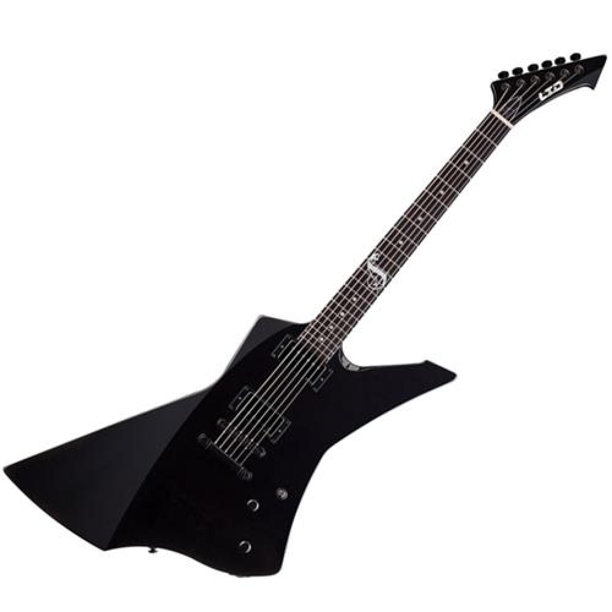 Corpo e Headstock Customizados Desenhado por James. Pronta para da o bote! A guitarra ESP LTD Snakebyte é um modelo EX modificado, desenhado e customizado por James Hetfield. Com corpo em mogno, braço em mogno, escala em ébano com 22 trastes extra jumbo, e venenosos captadores humbuckers EMG ativos. O Headstock exclusivo com logotipo de metal e a marcação Snake na 12 casa é um sinal de alerta que indica para quem se aproximar pisar levemente, ou será infectado com uma mordida muito forte.