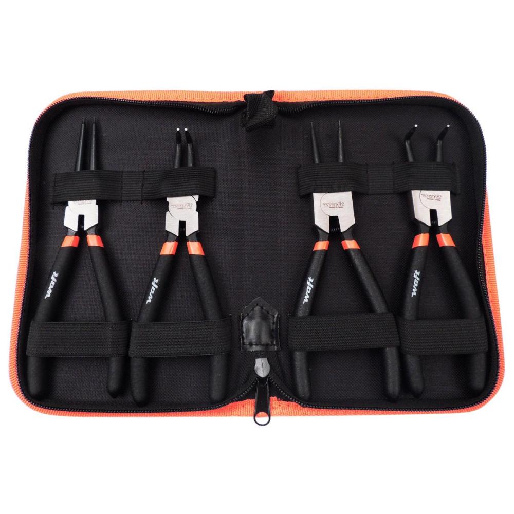 O conjunto inclui quatro alicates com tamanho de 7 polegadas (177mm), cada um com uma função específica. Alicate de anéis internos retos é utilizado para remover anéis internos de fixação em eixos ou rolamentos. Alicate de anéis externos retos é utilizado para remover anéis externos de fixação em eixos ou rolamentos. Já o alicate de anéis internos curvos é utilizado para remover anéis internos em locais de difícil acesso, como em áreas estreitas ou em ângulos diferentes. E por fim, o alicate de anéis externos curvos: utilizado para remover anéis externos em locais de difícil acesso, como em áreas estreitas ou em ângulos diferentes.