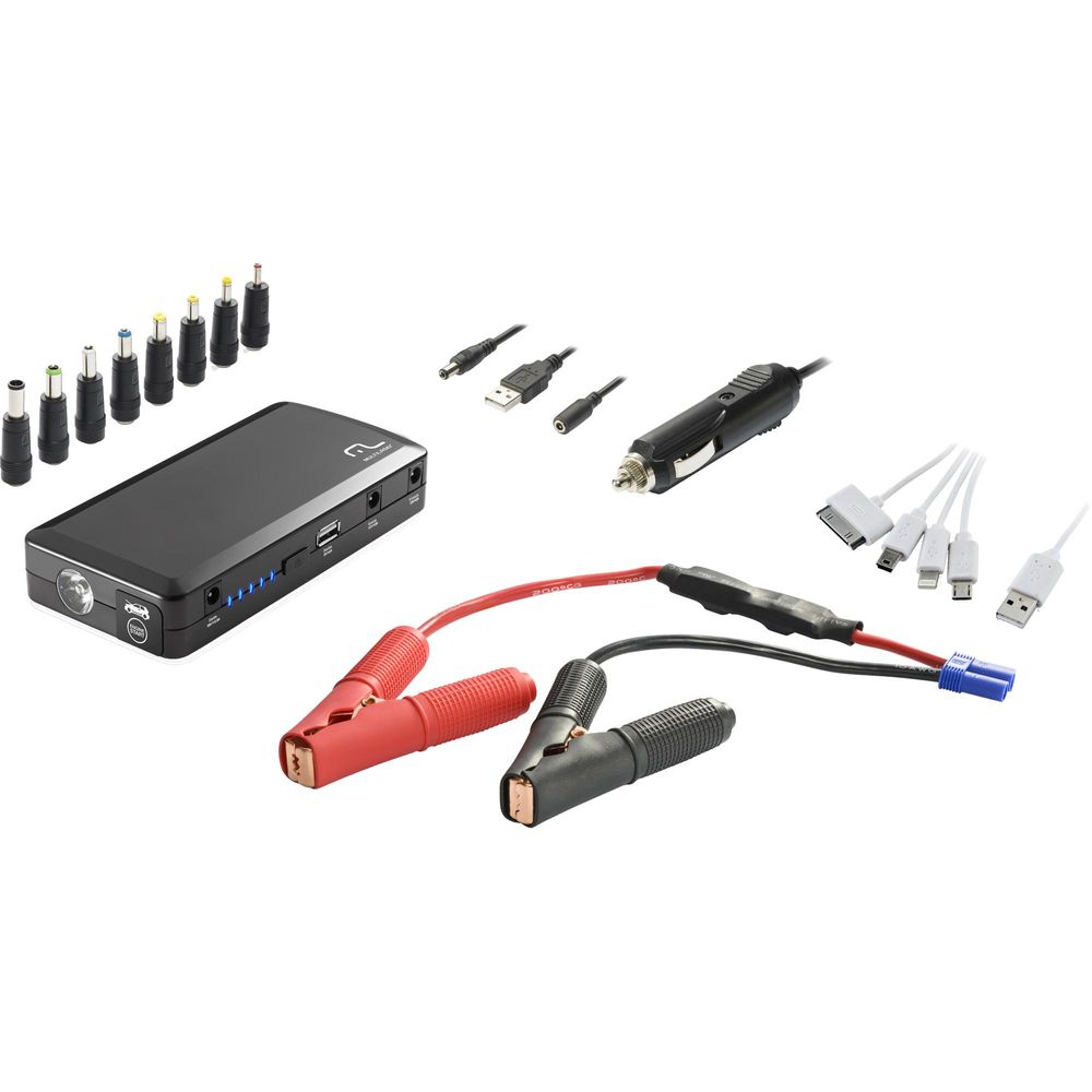 Ideal para auxiliar a partida de automóveis com bateria fraca, carregar o celular ou notebook. Além disso, possui lanterna LED para situações de emergência e acompanha adaptadores para noteebok e celular.
