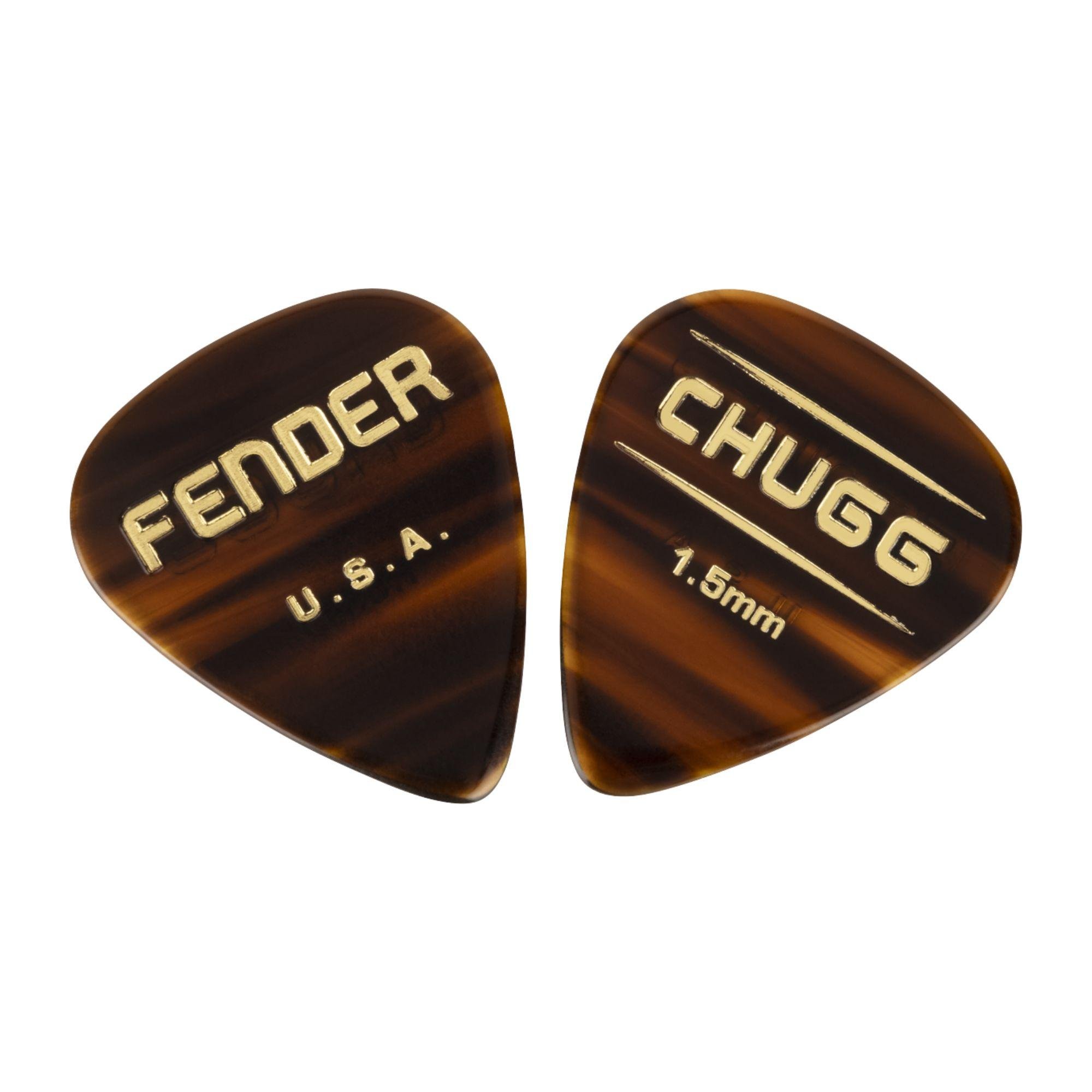 Vá fundo! As palhetas Fender Chugg™ são feitas de acetato de celulóse altamente polido de 1,5 mm de espessura que imita o som de casco de tartaruga real. Um chanfro duplo de corte de precisão na ponta cria uma sensação levemente quebrada que sua palheta preferida desenvolve ao longo do tempo. Esse chanfro reverso também permite que a palheta salte rapidamente de uma corda para outra, fazendo com que as palhetas Fender Chugg funcionem para uma infinidade de estilos de flatpicking. Um logotipo texturizado em ambos os lados garantirá uma pegada mais estável em sua nova palheta favorita.