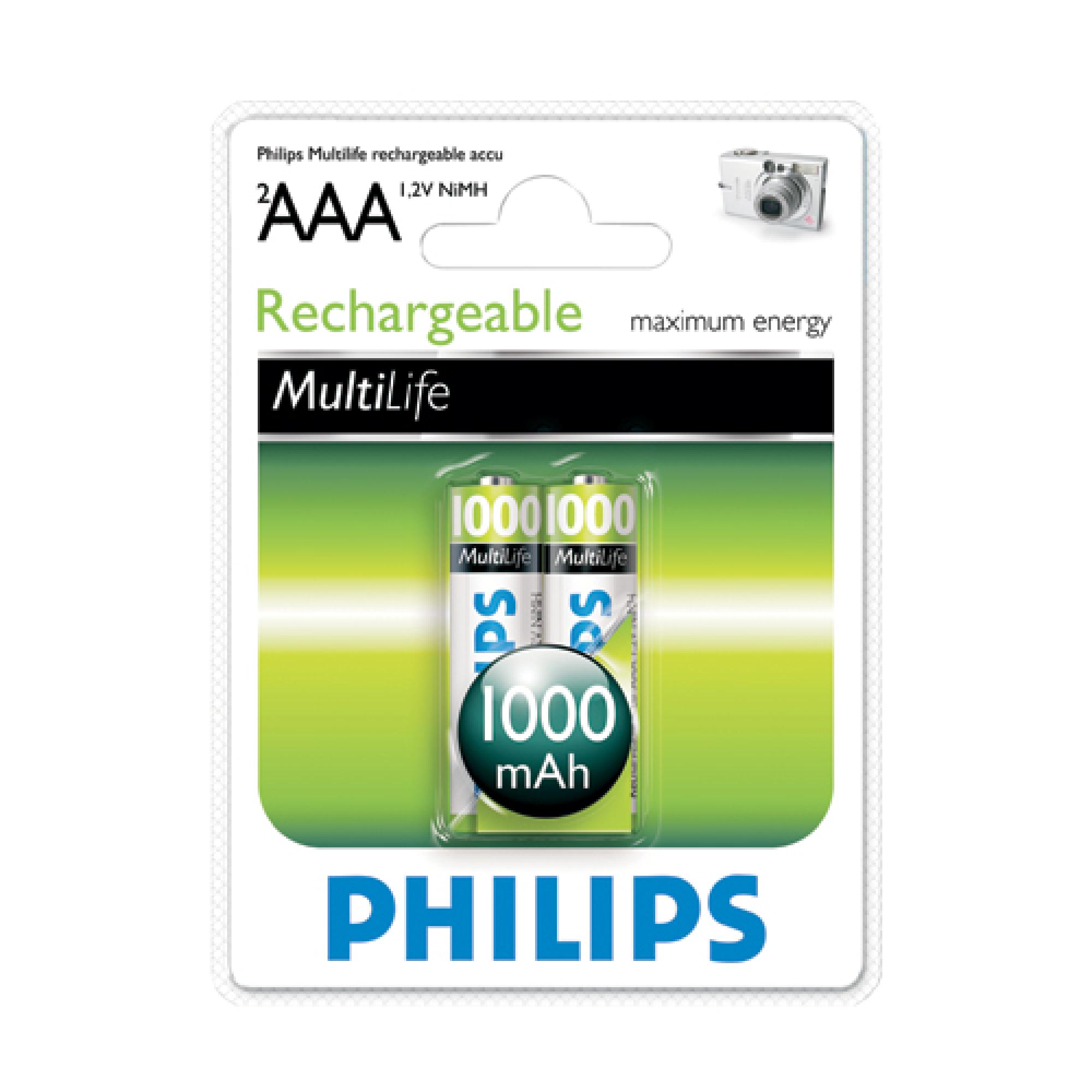 Pilha Recarregável com 2 AAA 1,2V 1000mAh NiMh PHILIPS