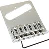 Plate de ponte cromada com 6 saddles (carrinhos) ajustáveis. A montagem inclui parafusos de entonação, molas, e parafusos para ajusta da altura. Não inclui o hardware de montagem da ponte ou do captador. Inclui chave de ajuste de altura dos saddles.