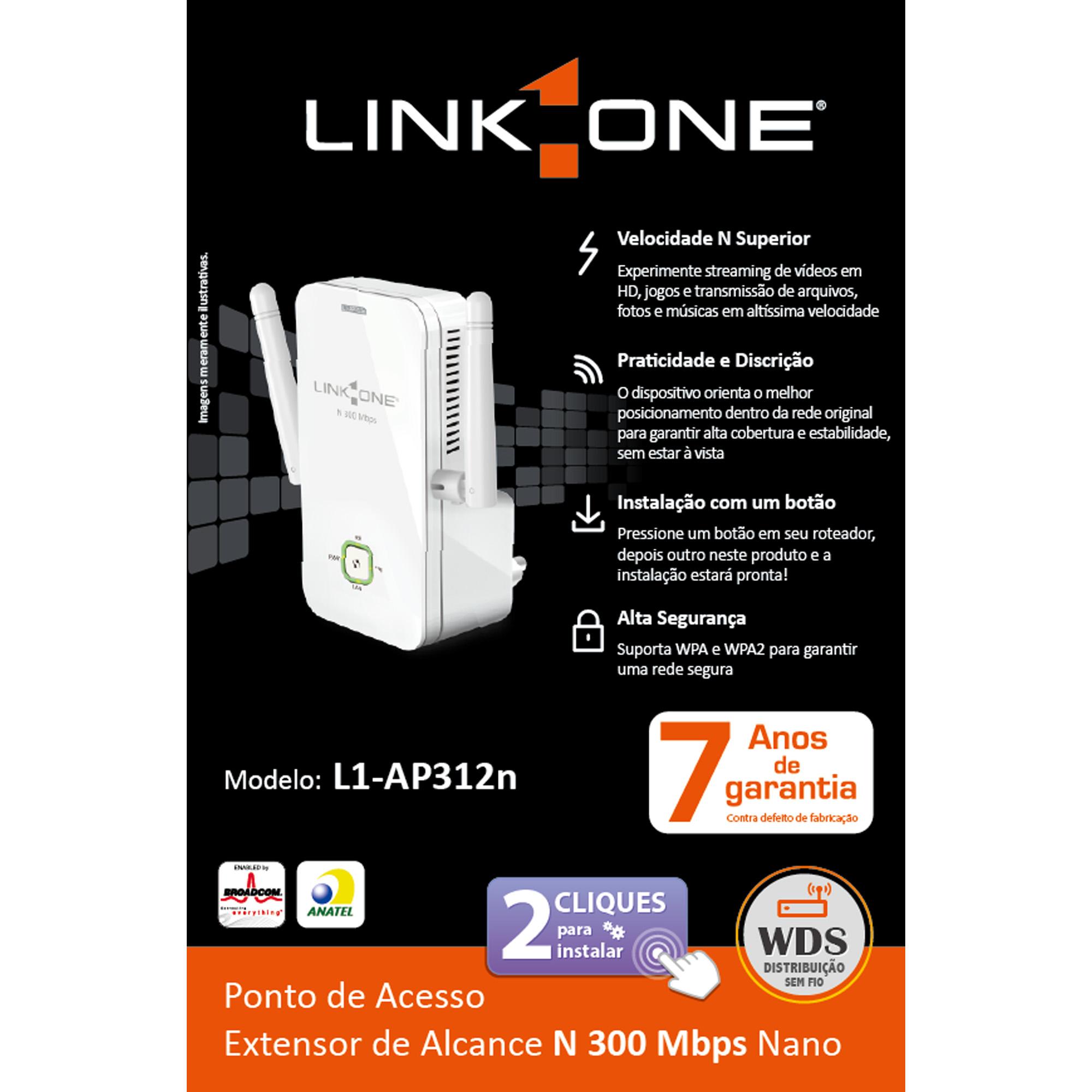 - Instalação em dois cliques: Pressione o botão WPS em seu roteador e em seguida em seu L1-AP312n ligado e pronto! Sua rede já estará estendida!