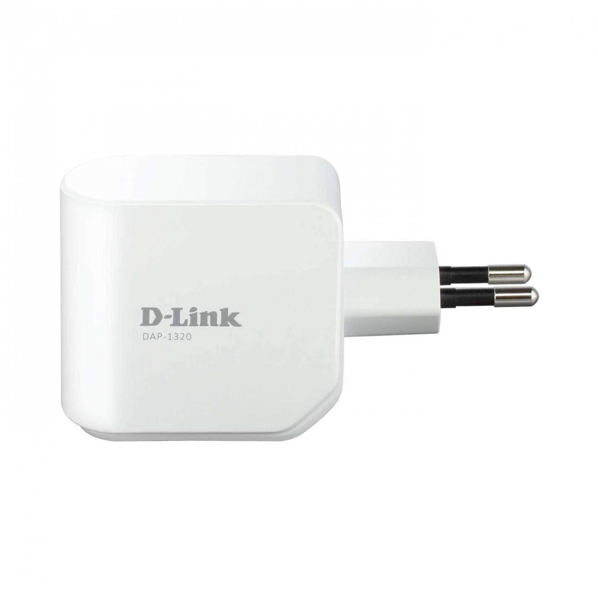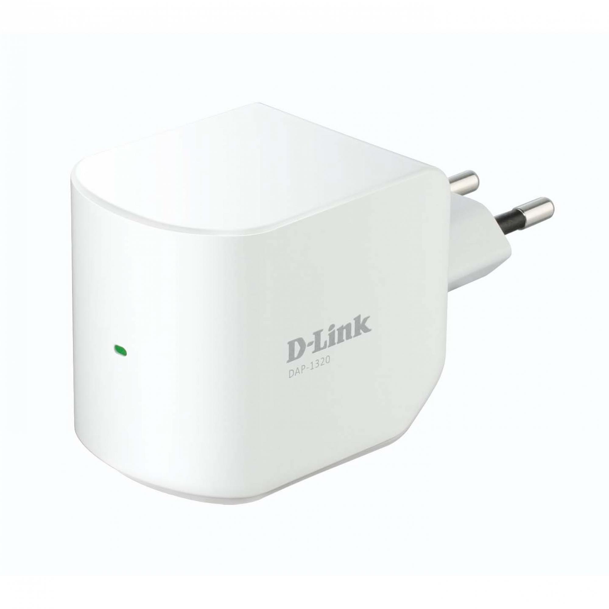 O Repetidor Wireless N 300Mbps DAP-1320 é um repetidor portátil para conexão na tomada que permite estender uma rede wireless existente. Você pode colocá-lo em qualquer lugar na sua residência para aumentar o alcance da sua rede wireless. Minúsculo mas poderoso, ele suporta velocidades Wireless N de até 300 Mbps em um dispositivo que cabe na palma da sua mão.