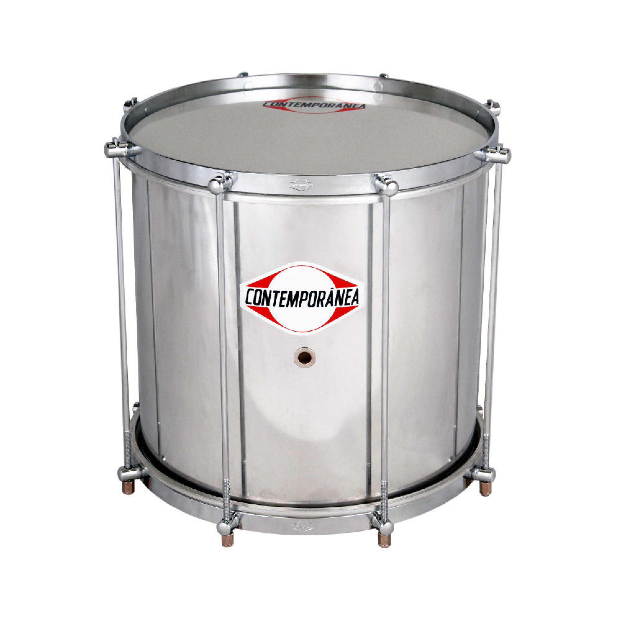 Produzido em alumínio, o repinique contemporânea é um instrumento que apresenta ótima sonoridade e possui pele em nylon,além das ferragens cromadas.