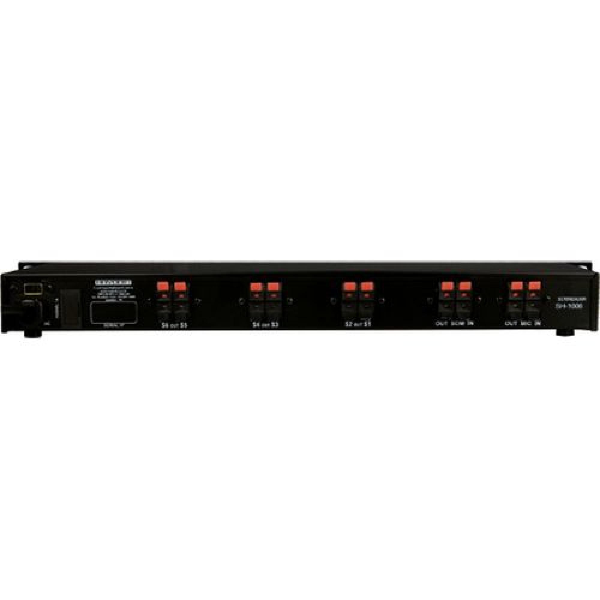Utiliza chaveamento por relê duplo (Liga/Desliga os dois pólos do circuito). Permite o chaveamento individual por canal ou todos os canais simultaneamente (chave master). Possui 2 entradas de sinais, a primeira entrada está presente nas saídas que forem selecionadas quando o gongo/microfone for acionado no pré-amplificador, já a segunda entrada de sinal está presente em todas as saídas.