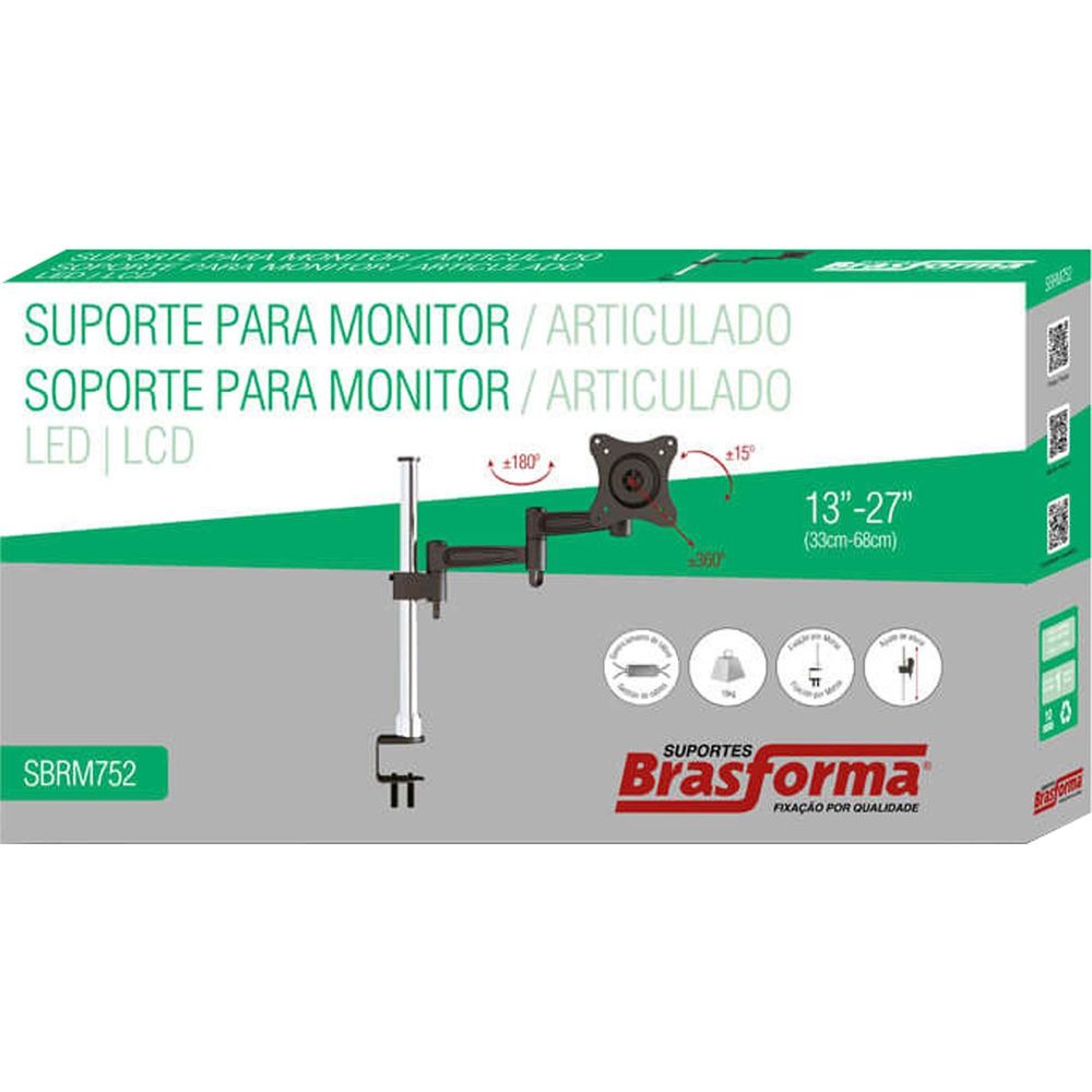 Suporte Articulado P/ Monitor 13" a 27" SBRM752 Preto/Prata BRASFORMA