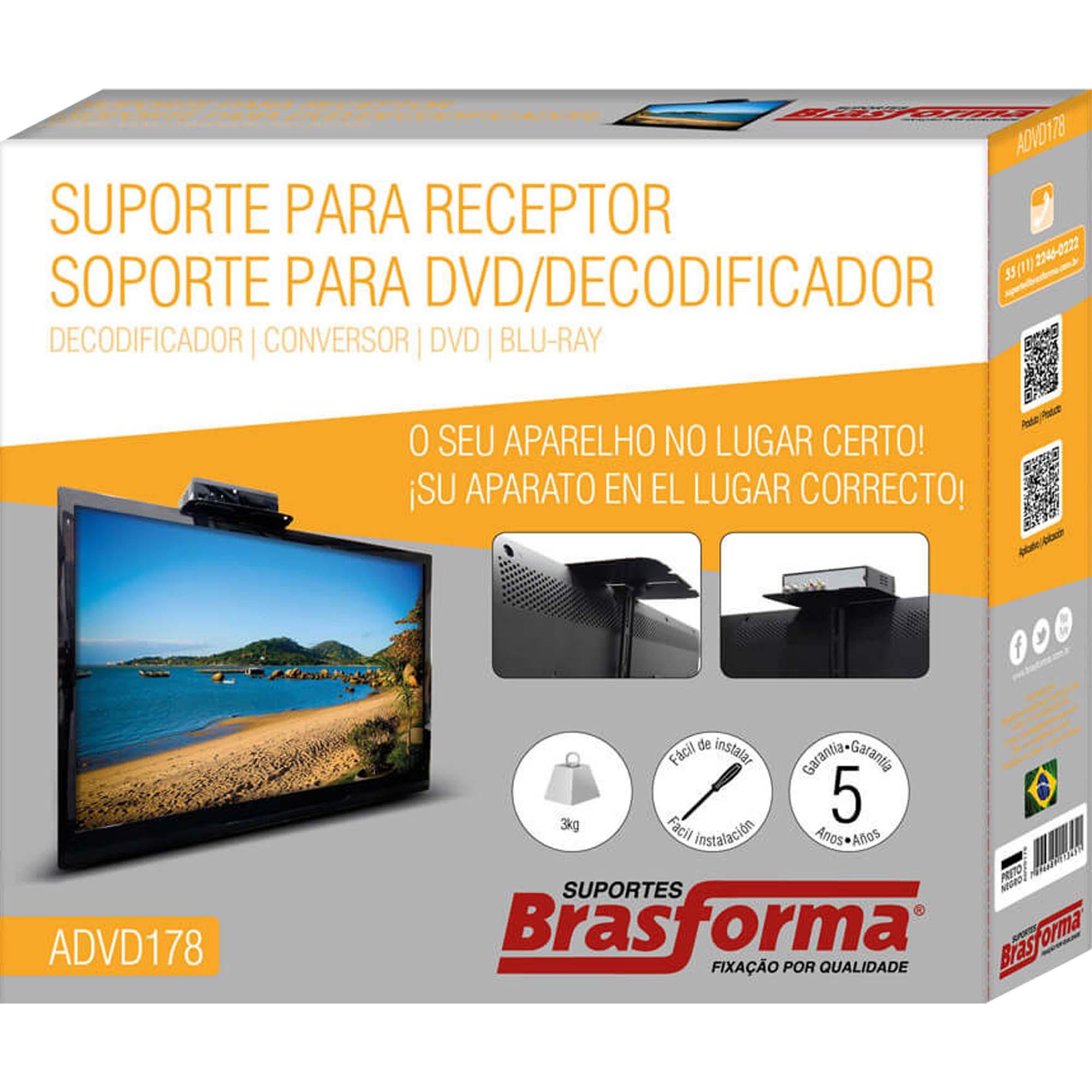 Suporte de Parede Para DVD ADVD178 Preto Brasforma