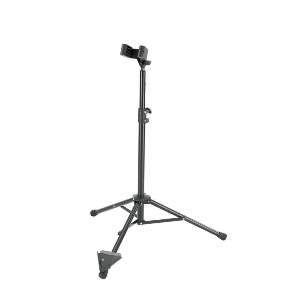O suporte pode ser ajustado em inclinação e largura. A base em forma de V é projetada para que seja fácil posicionar o instrumento no suporte. O suporte é fácil de dobrar, ficando de forma compacta para transporte.