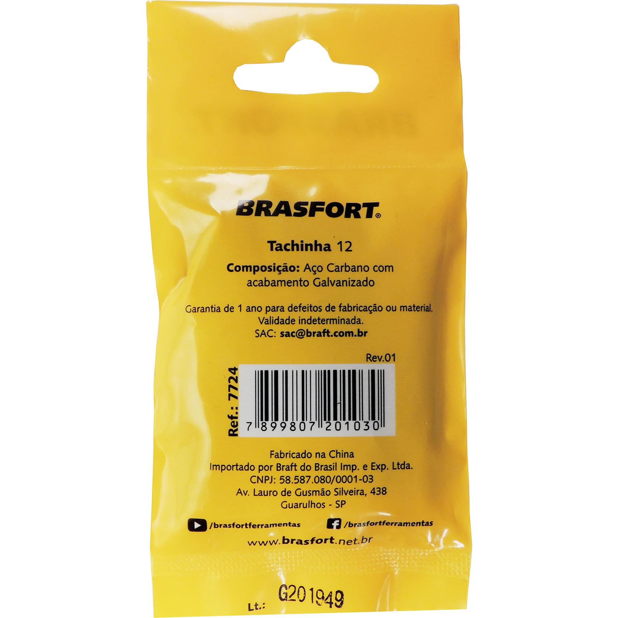 A Tachinha nº12 Brasfort é feita de aço com acabamento galvanizado, proporcionando uma durabilidade superior ao metal. Ideal para fixar tecidos, papéis e outros materiais de forma segura e confiável.