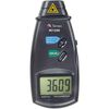 Instrumento digital portátil, com LCD de 5 dígitos, precisão básica de 0.05%+1D e registro de máximo, mínimo e leitura atual e mudança de faixa automática. Realiza medidas de RPM por meio foto-eletrônico e por contato e medidas de velocidade de superfície em m/min. Inclui como acessórios adaptadores e fitas refletoras.