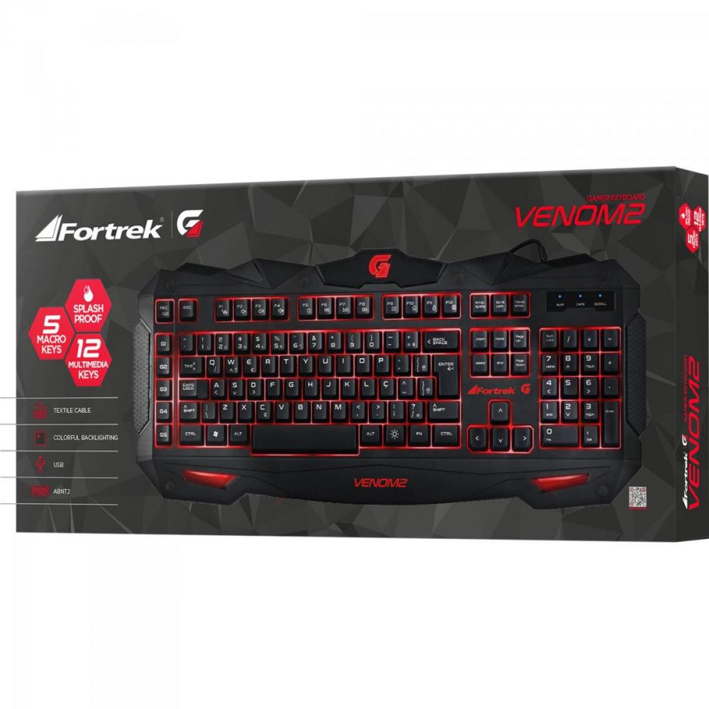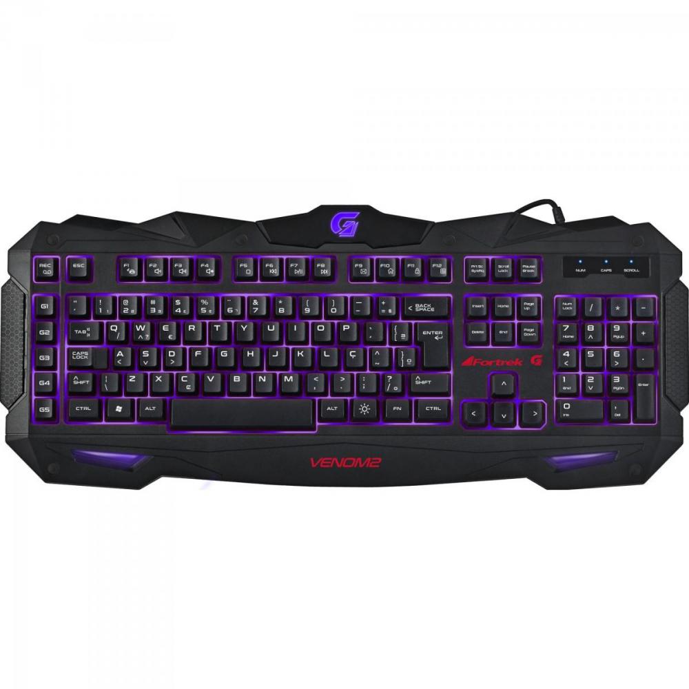 O Novo Teclado SPIDER VENOM 2 da Fortrek é o produto ideal para os gamers de todos os gêneros. Com um visual incrível e iluminação em 3 cores (azul, vermelho e roxo) ele possui 5 teclas macro programáveis para facilitar na hora de jogar, podendo programar uma lista de códigos que melhora o desempenho tanto em jogos de luta, FPS, e muito mais.